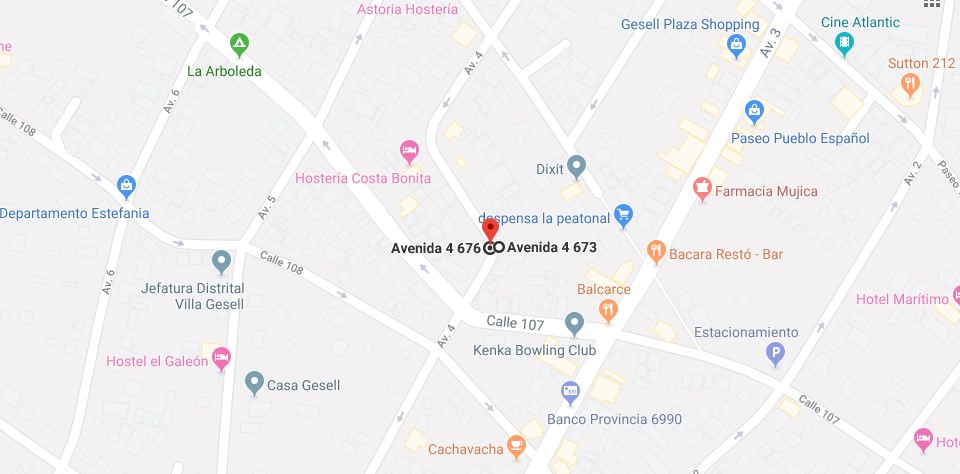 Los Departamentos La esquina se encuentra en Villa Gesell Av. 4 entre Paseo 106 y 107 en pleno centro a 1 cuadra de la peatonal y a tan sólo 350 mts. del mar